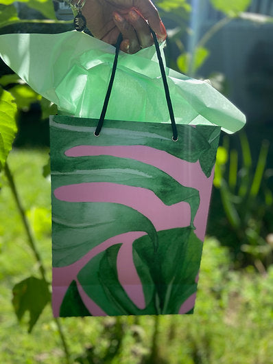 Monstera Pink + Green Gift Bag | 9.6x13 Luxe Paper Gift Bag